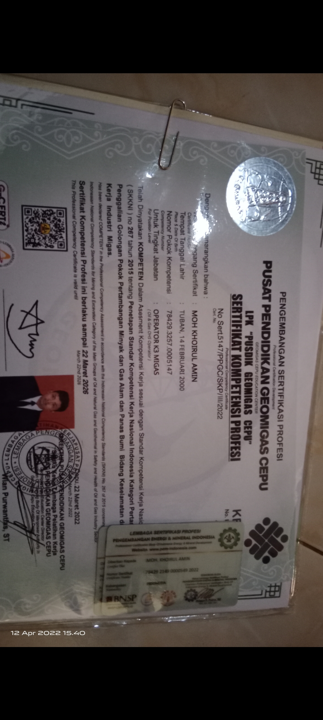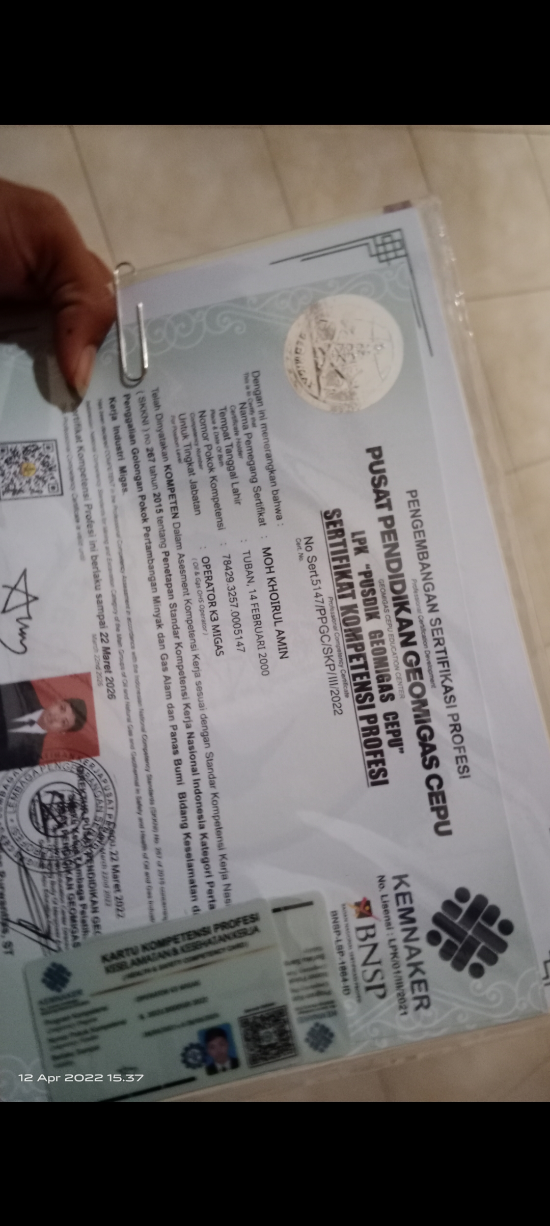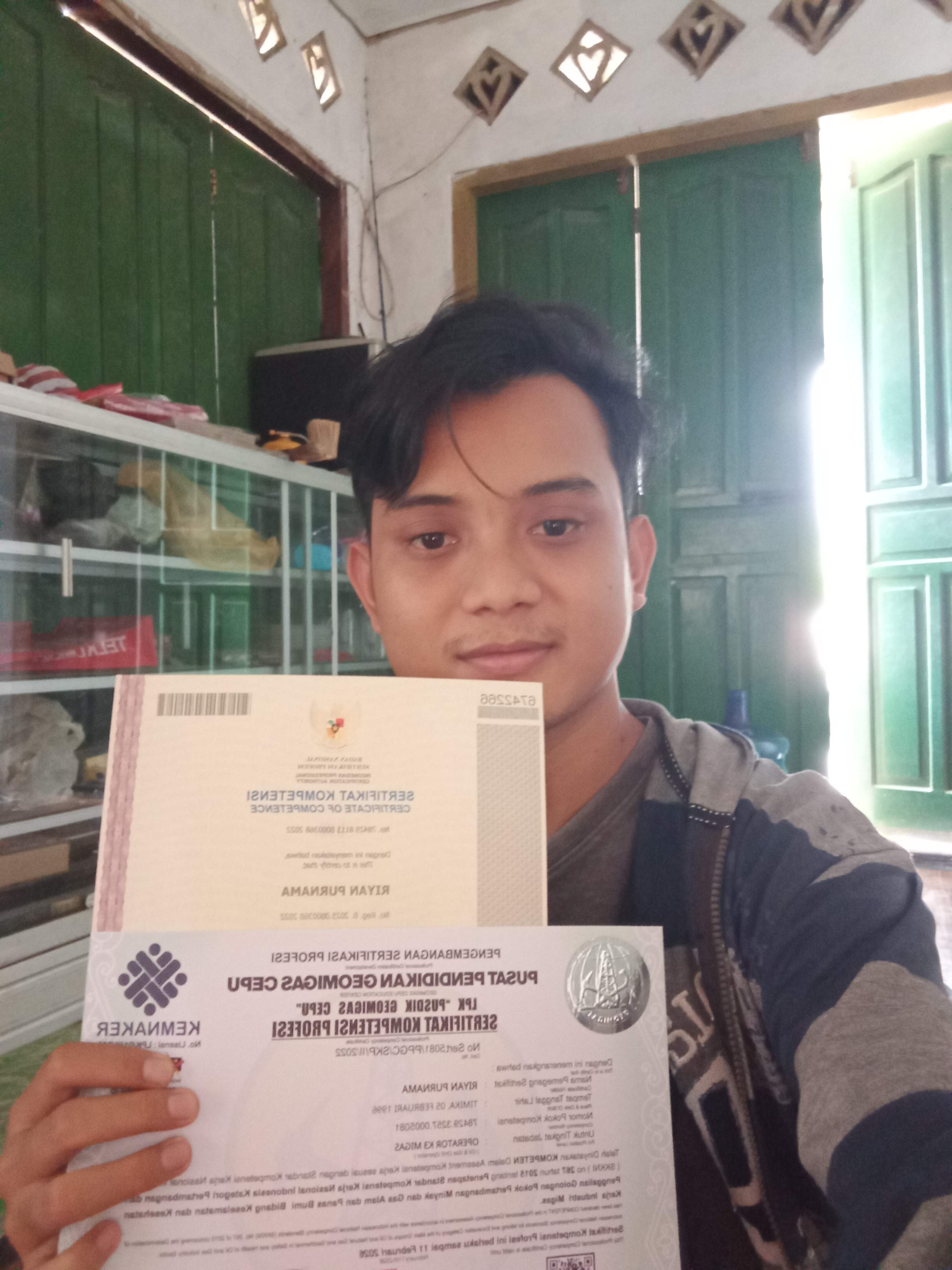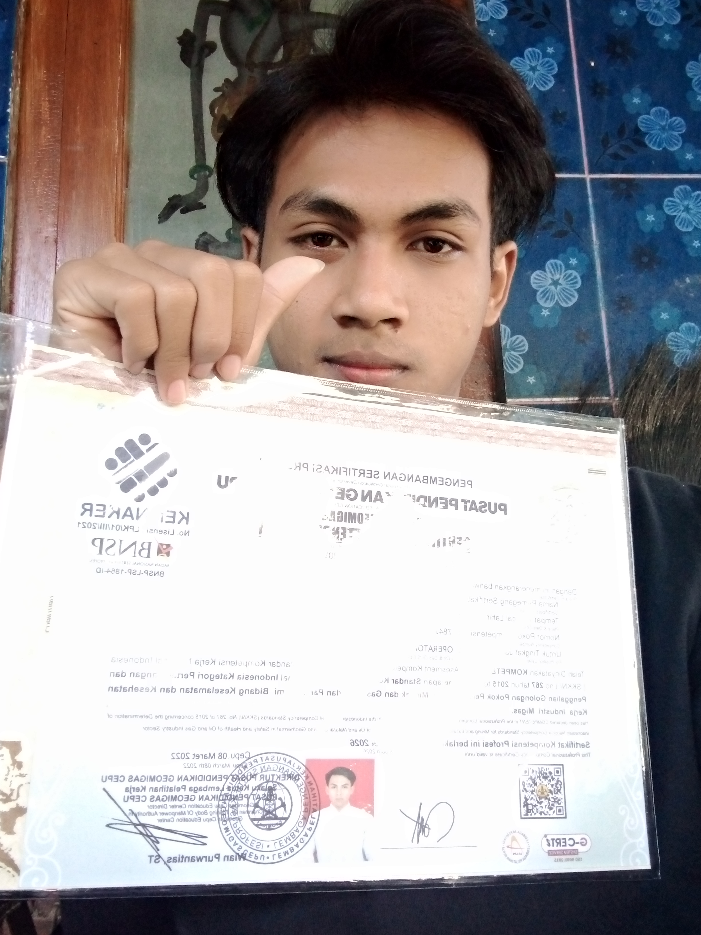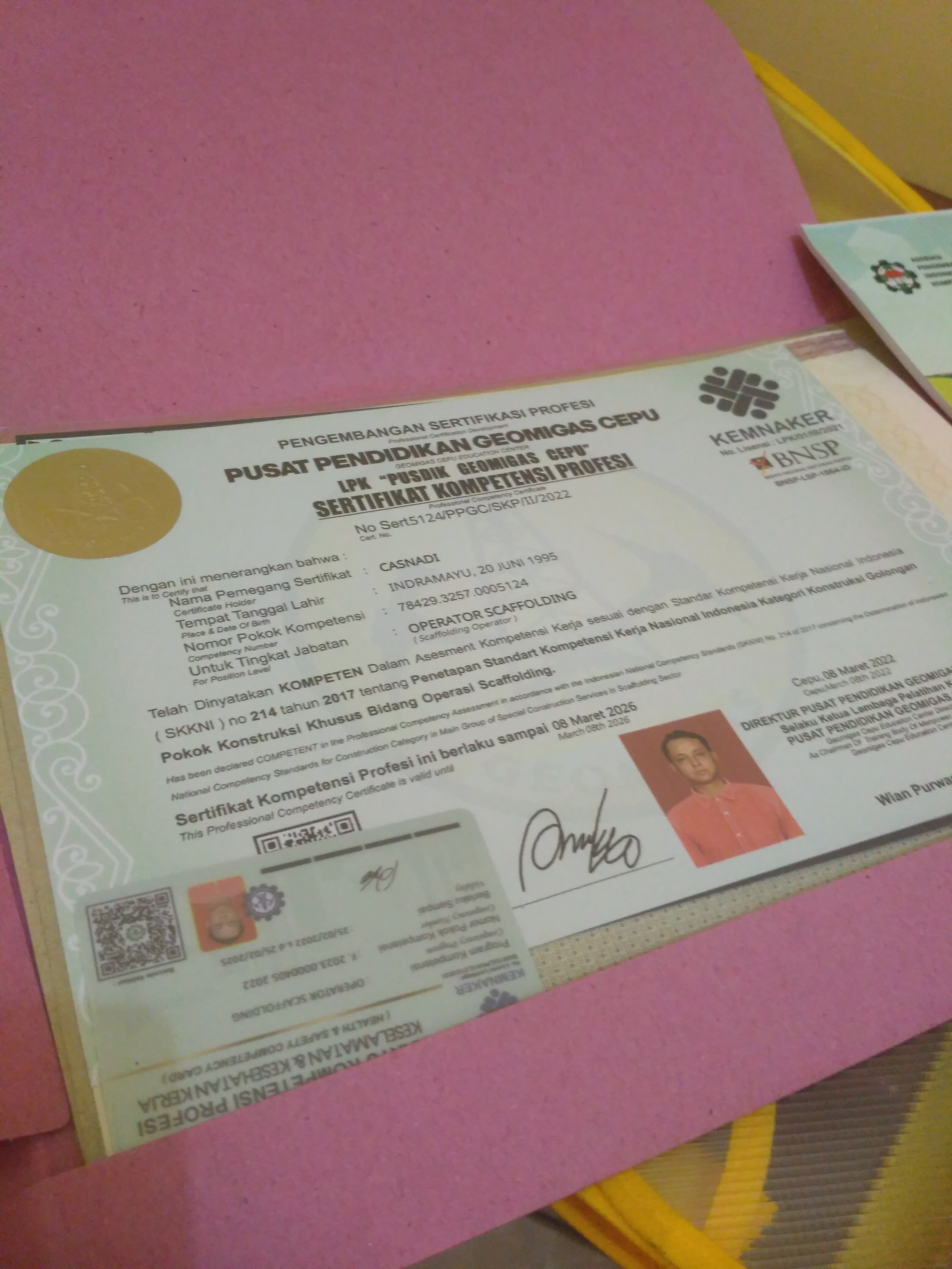 ALHAMDULILLAH SAYA SUDAH MENDAPATKAN SERTIFIKAT KOMPETENSI PROFESI DI LPK PUSDIK GEOMIGAS CEPU, TEMPAT TRAINING SCAFFOLDER RECOMMEND BANGET, MATERI JELAS SEKALI KARENA TRAINER BERPENGALAMAN DAN MASIH BANYAK LAGI KEUNGGULANNYA, YANG PASTINYA RESMI TERDAFTAR DI KEMNAKER RI, DAN YANG PALING PENTING BUKAN CUMA SERTIFIKAT TAPI ILMU YANG DIDAPAT YANG BISA DIMANFAATKAN DAN BISA DIAPLIKASIKAN...